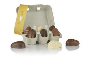 6 stk. Marcipan æg i æggebakke med gult Cocoturebånd 216 g FORUDBESTIL NU