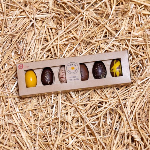 Denne æske indeholder én af hver af Anker Chokolades påskevarianter: