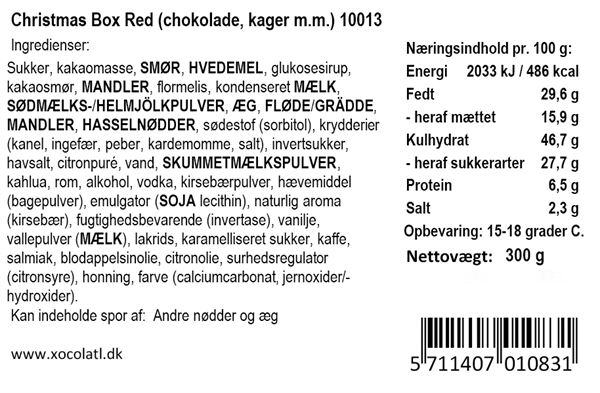 fyldte chokolader i enkeltpakket twistpapir, samt en gaveæske med 9 fyldte chokolader med marcipan,