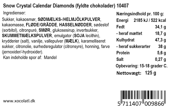 Snow crystal calendar diamonds Xocolatl 125 g