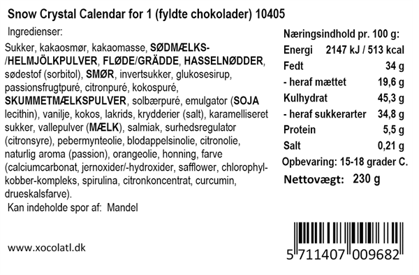 Snow crystal calendar for 1 fra Xocolatl 200 g