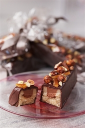 *mandler (31%), *sukker, *kakaomasse (17%), *hasselnødder