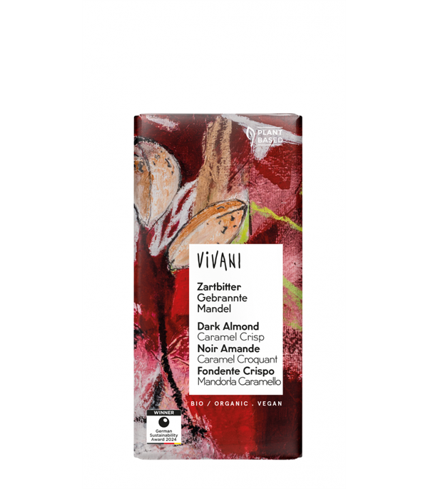 Denne lækre, økologiske chokolade fra Vivani er en bittersød variant med indtryk af vintertidens brændte mandler og honningkage-krydderier.